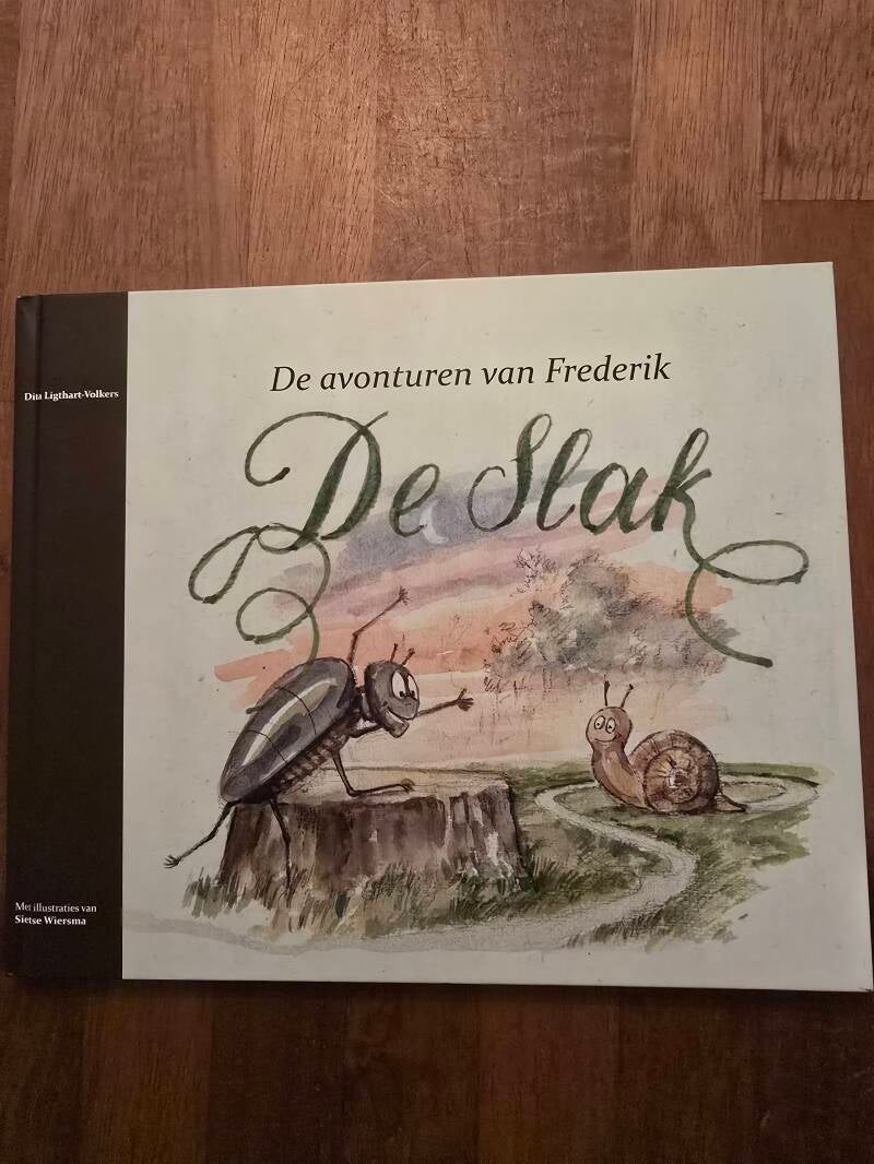 Dita Ligthart Volkers en Sietse Wietsma presenteren het ki derboek "De avonturen van Frederik de Slak" op de kerstmarkt van Duin en Kruidberg